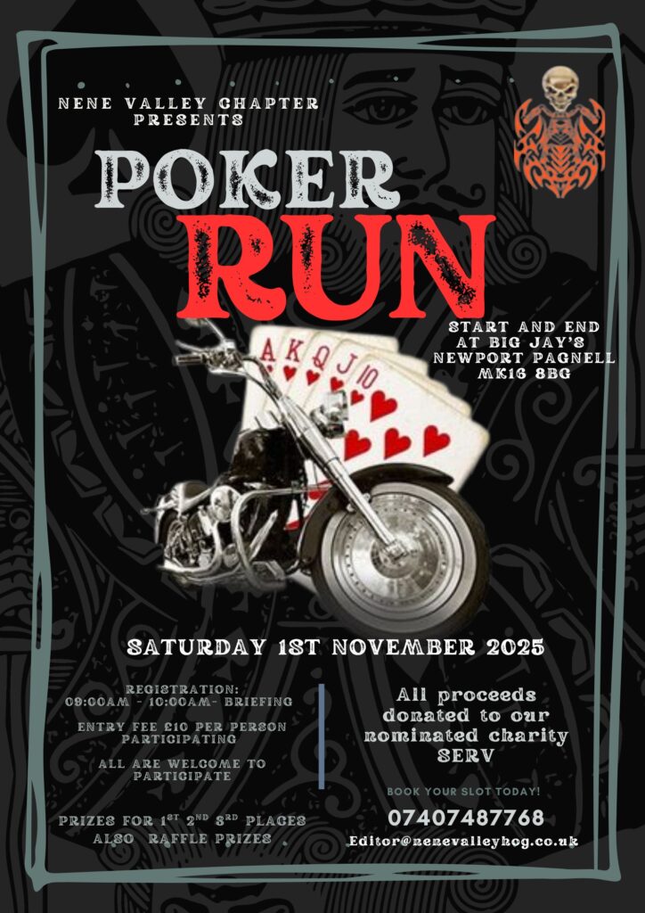 This is a poker run raising money for our nominated charity. There is a £10 per person entry fee with prizes for 1st, 2nd and 3rd places.