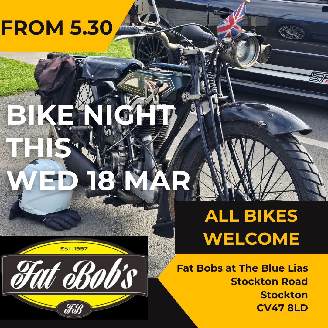 Every Wednesday from 5.30 we welcome all bikes and scooters This weeks bikers special is our BBQ chicken wings and fries with house slaw We also offer warm snacks, cakes and coffee in the Pitstop and alcohol free drinks from the bar See you Wednesday Fat Bobs at The Blue Lias, Stockton Road, Stockton, CV47 […]