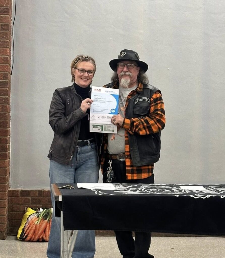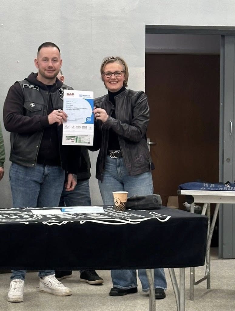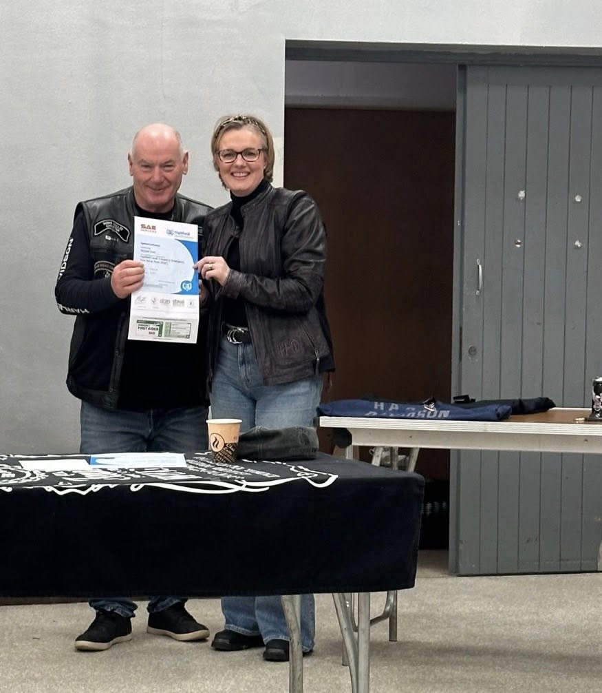 We had our March club night at the SRA on Thursday 12th March. Everyone was getting excited about the forthcoming riding season. The night also saw the awarding of certificates, from Ellen and Colin, who had carried out some first aid training to some of our road captains and road marshalls.
